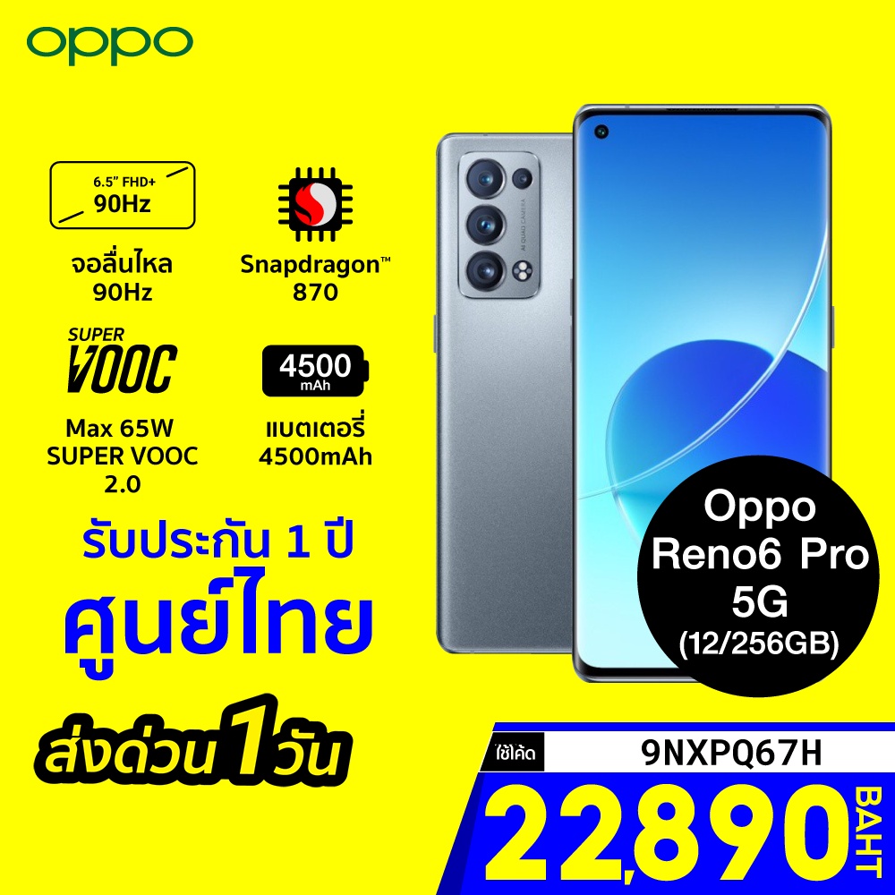 [เหลือ 22890 บ. โค้ด 9NXPQ67H] OPPO Reno6 Pro 5G (12+256) โทรศัพท์มือถือ กล้องหลัง AI 50MP Sony IMX766 -1Y |