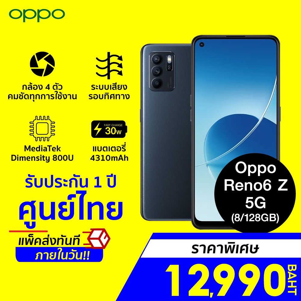 [ราคาพิเศษ 8699บ.] OPPO Reno6 Z 5G (8/128GB) AMOLED 6.4 CPU Dimensity 800U -1Y |