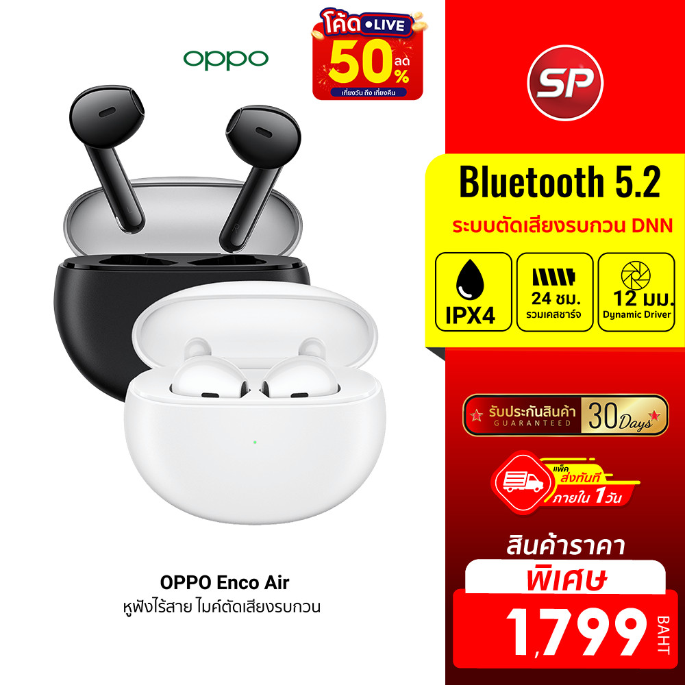 [1799บ. ดูโค้ดรูป 2] OPPO Enco Air หูฟังไร้สาย ไมค์ตัดเสียงรบกวน Bluetooth 5.2 หูฟัง True Wireless -30D |