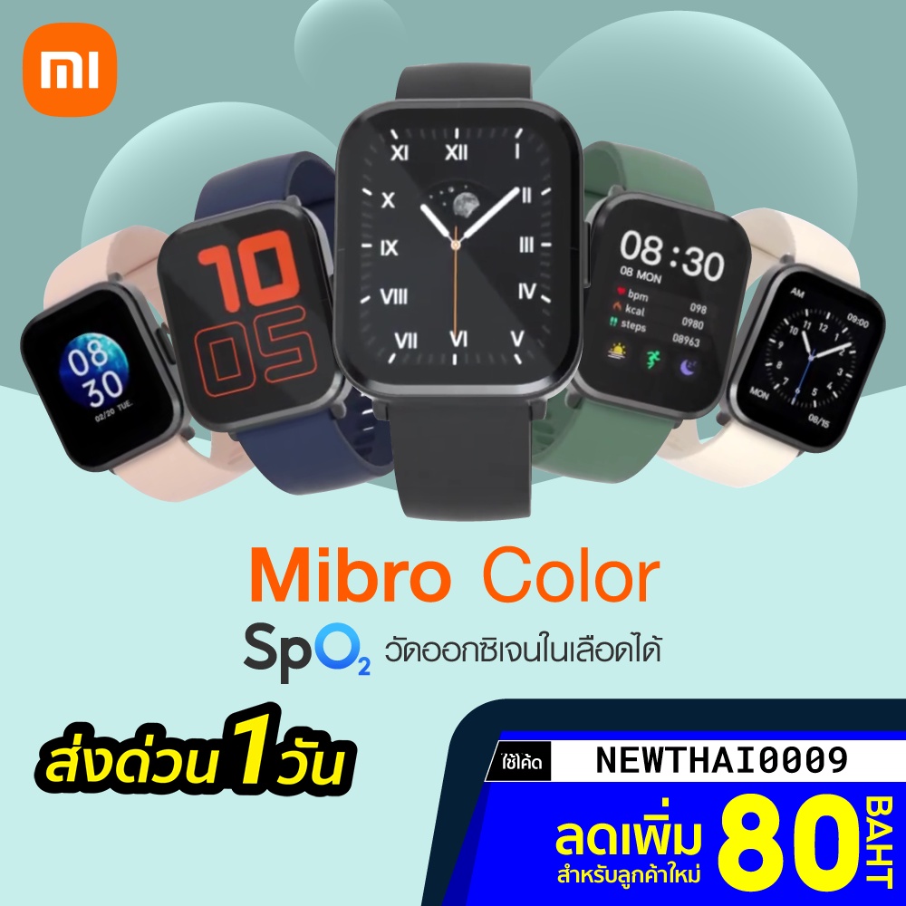 ศูนย์ไทย [ราคาพิเศษ 1199บ.] Mibro Color (SpO2) รุ่นใหม่ วัดออกซิเจนในเลือด Smart Watch สมาร์ทวอทช์ -6M |