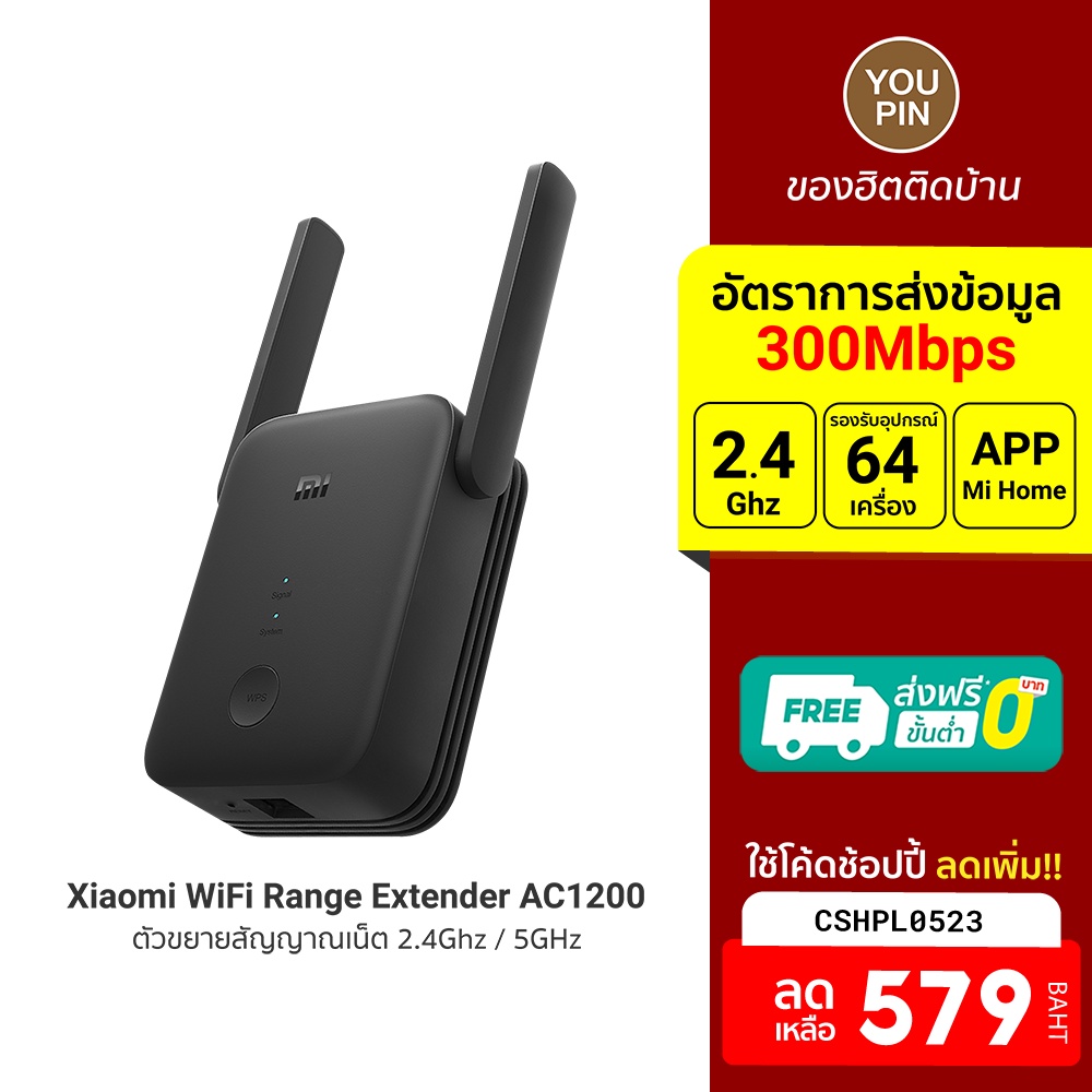 | YoupinOfficialStore | 10517611971 | 46372778538 | [579บ.โค้ดCSHPL0523] Xiaomi Mi WiFi Range Extender AC1200 ขยายสัญญาณเน็ต 2.4Ghz/5GHz ตัวขยายสัญญาณ WIFI -1Y | [object Object] | 0.00 | 143 | 5 | 0.00 | 0.00 | 0.00 | 0% | ||||||||||||||||