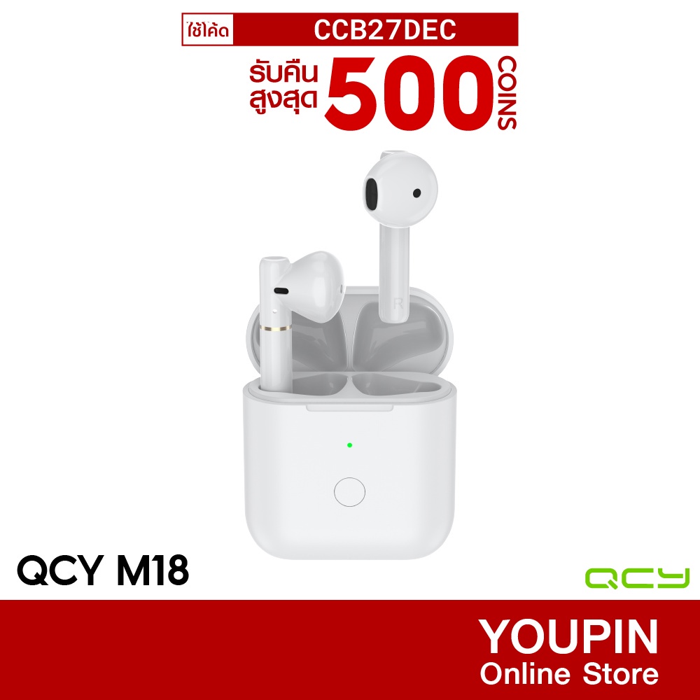 [รับ58c. CCB27DEC] QCY M18 หูฟังไร้สาย True Wireless BT 5.1 กันน้ำ ลดเสียงดีเลย์ รุ่นใหม่กว่า T8 -1Y |