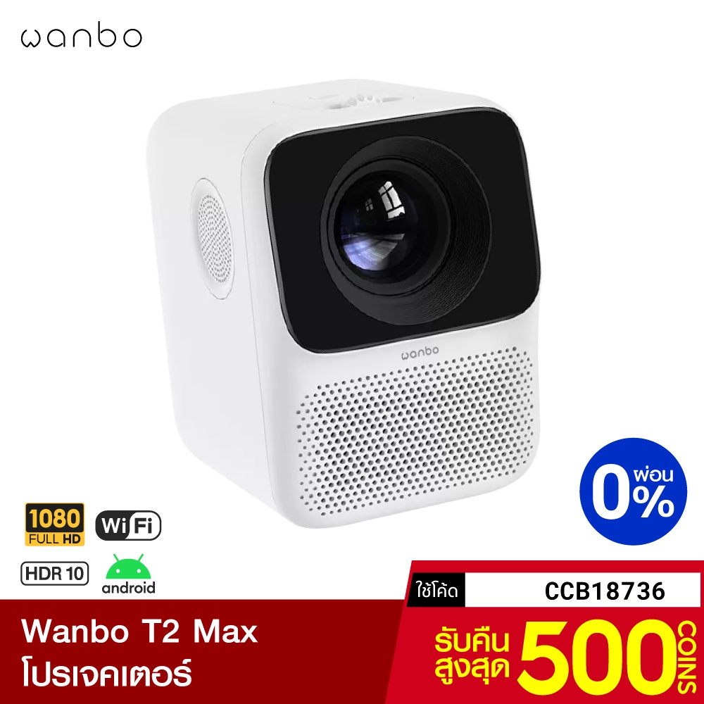 [รับ500c. CCB18736] Wanbo T2 Max แอนดรอยด์ โปรเจคเตอร์ คมชัด 1080P เล่นไฟล์ 4K -30D |