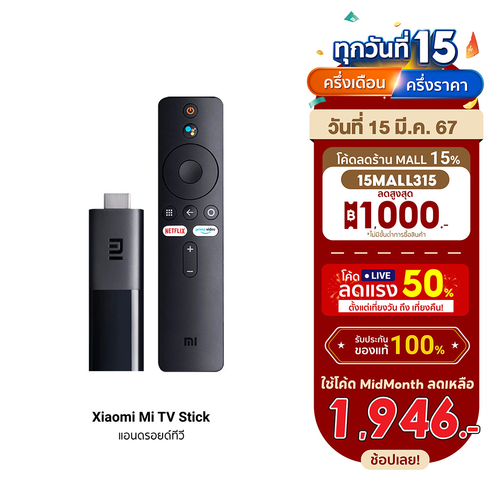 [1946บ.โค้ด15MALL315] Xiaomi Mi TV Stick / TV Stick 4K ระบบปฏิบัติการ Android TV 9.0 เชื่อมต่อ HDMI |