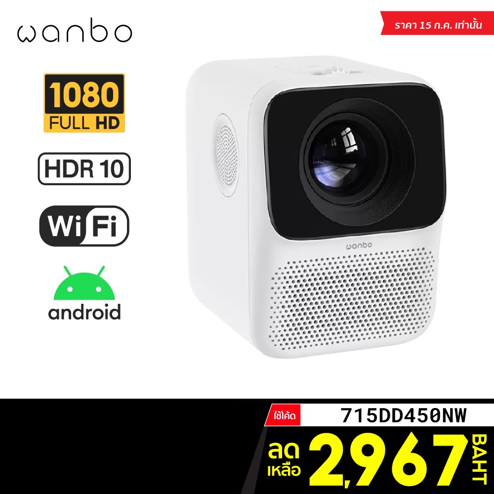[เหลือ 2967 บ. โค้ด 715DD450NW] Wanbo T2 Free / Wanbo T2 Max แอนดรอยด์ โปรเจคเตอร์ คมชัด 1080P เล่นไฟล์ 4K -30D
