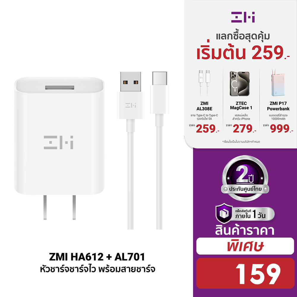 [159 ดูโค้ดรูป 2] ZMI HA612/AL701 หัวชาร์จ จ่ายไฟสูงสุด18W รองรับชาร์จไว QC3.0 ตัวเดียวใช้ได้ทั่วโลก -2Y