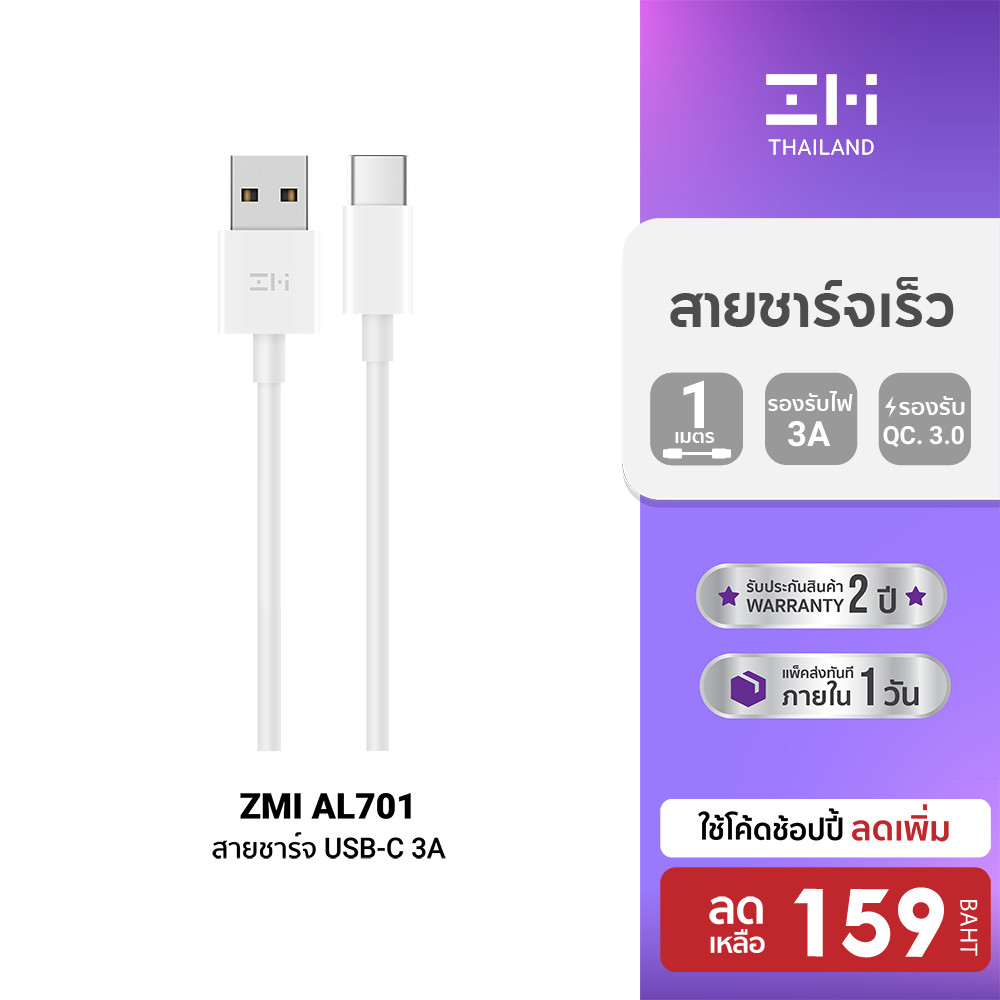 [ลดเหลือ 159] ZMI (AL701) สายชาร์จ USB Type-C 100 ซม.ชาร์จเร็ว สำหรับ SAMSUNG / HUAWEI / อื่นๆ -2Y