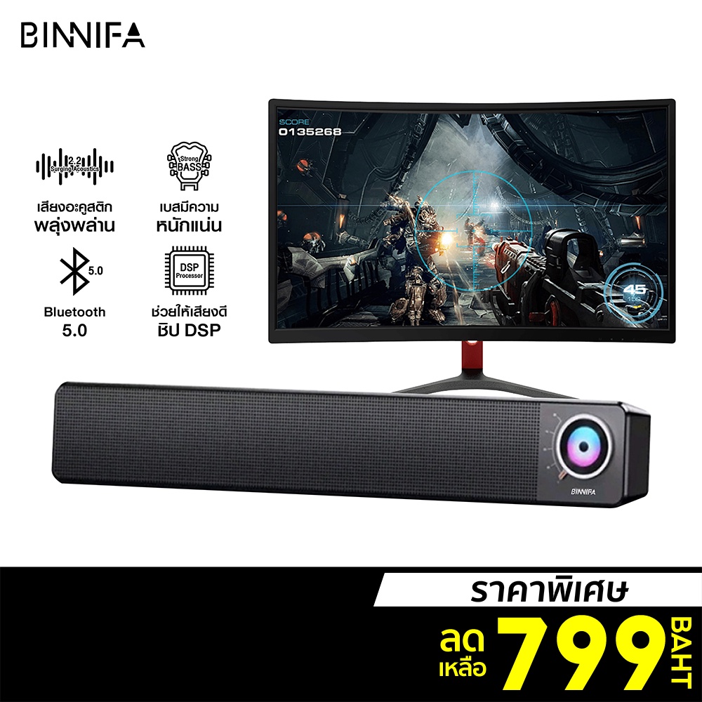 [ราคาพิเศษ 799บ.] BINNIFA Play 1D ลำโพงคอมพิวเตอร์ ซาวด์บาร์ ระบบเสียง 2.2 Surging Acoustics -30D