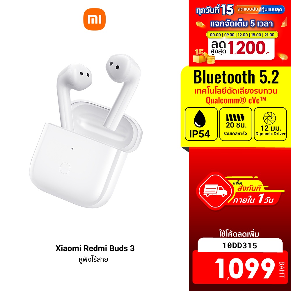 ศูนย์ไทย [1099 บ. โค้ด 10DD315] Xiaomi Redmi Buds 3 ไดร์เวอร์ใหญ่ Chip Qualcomm® หูฟังไร้สาย หูฟังบลูทูธ-1Y |