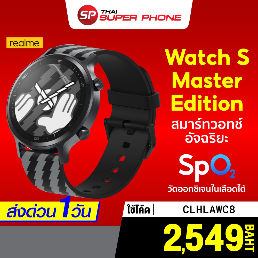 [เหลือ 2649 บ. โค้ด CSV8UZYH] Realme Watch S Master Edition หน้าจอสัมผัส 1.3" แบตเตอรี่ยาวนาน 15 วัน วัดการเต้นของหัวใจ |