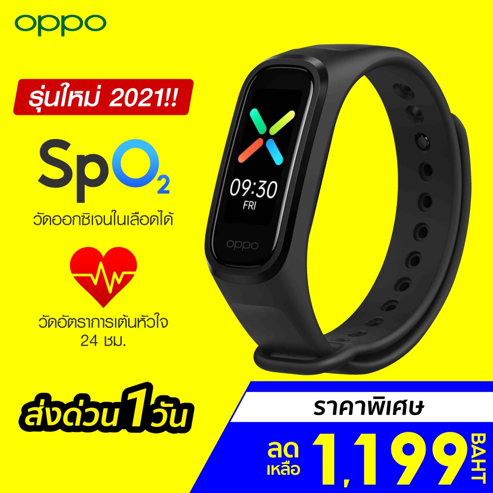 [ราคาพิเศษ 1199บ.] OPPO Band สายรัดข้อมืออัจฉริยะ วัดการเต้นของหัวใจ/SpO2 กันน้ำ ออกกำลัง 12 โหมด - 1Y |
