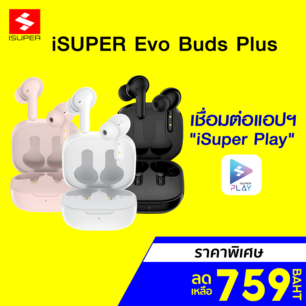 [ลดเหลือ 1199] iSuper Evo Buds Plus / Gaming / ANC หูฟังไร้สาย เบสแน่น ไมค์ชัด ต่อแอปได้ BT5.1 -1Y |