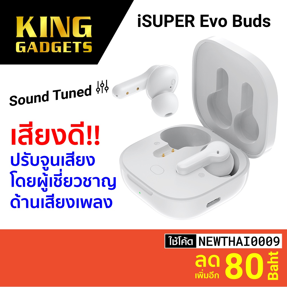 [ราคาพิเศษ 659บ.] iSUPER Evo Buds เบสดี คุยชัด Bluetooth 5.1 แบตอึด 40 ชม. หูฟังไร้สาย หูฟังบลูทูธ -1Y |