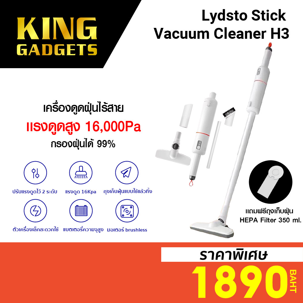 [ราคาพิเศษ 1890บ.] เครื่องดูดฝุ่นมือถือไร้สาย Lydsto Stick Vacuum Cleaner H3 เเรงดูดสูง16,000Pa -12M |