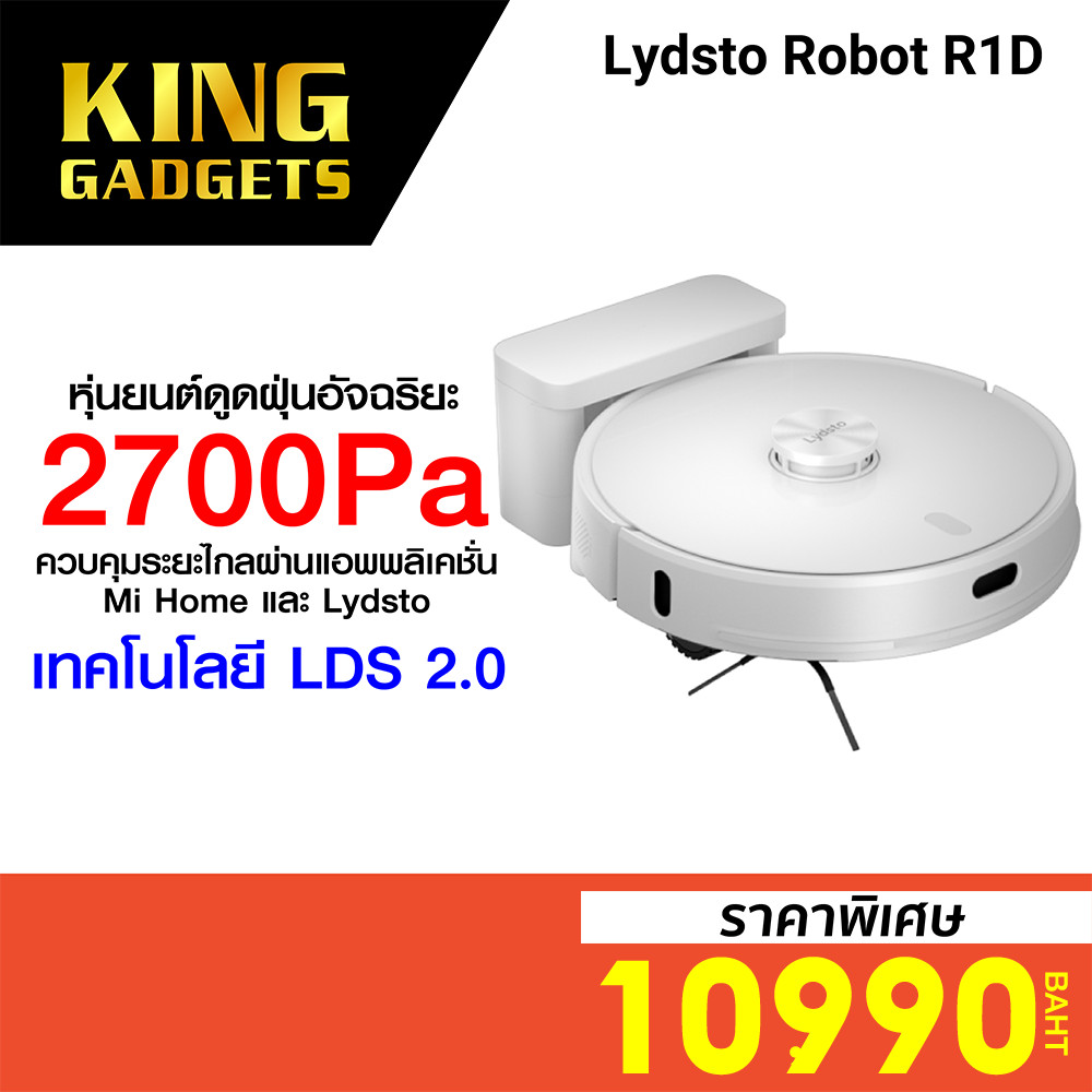 [ราคาพิเศษ 10990บ.] Lydsto Robot R1D หุ่นยนต์ดูดฝุ่นอัจฉริยะ LDS 2.0 จดจำแผนที่ได้สูงสุด 3 แผนที่ -12M |