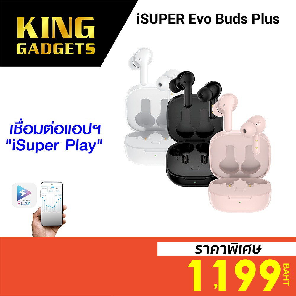[ลดเหลือ 1199] iSuper Evo Buds Plus / Gaming / ANC หูฟังไร้สาย เบสแน่น ไมค์ชัด ต่อแอปได้ BT5.1 |
