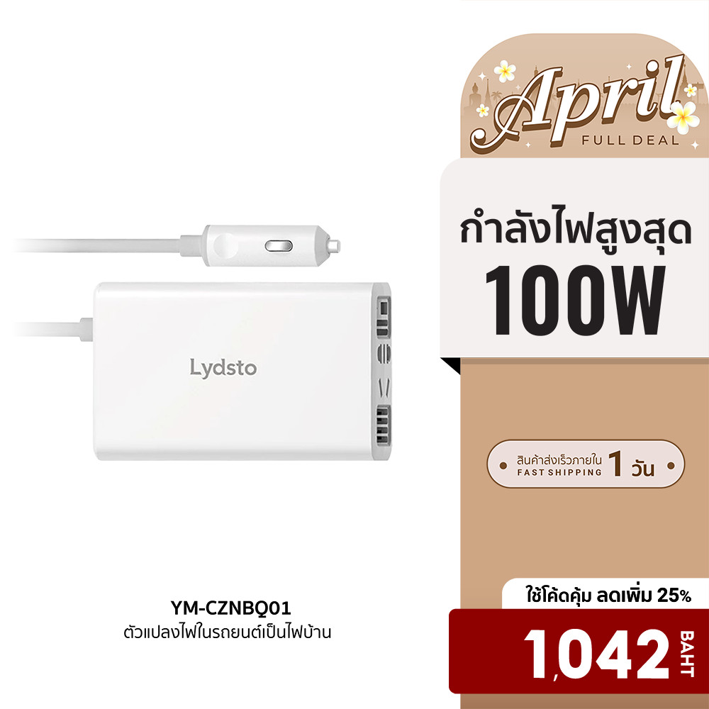 [ลดเหลือ 1042] Lydsto YM-CZNBQ01 อินเวอร์เตอร์ แปลงไฟในรถยนต์เป็นไฟบ้าน 100W -3M |