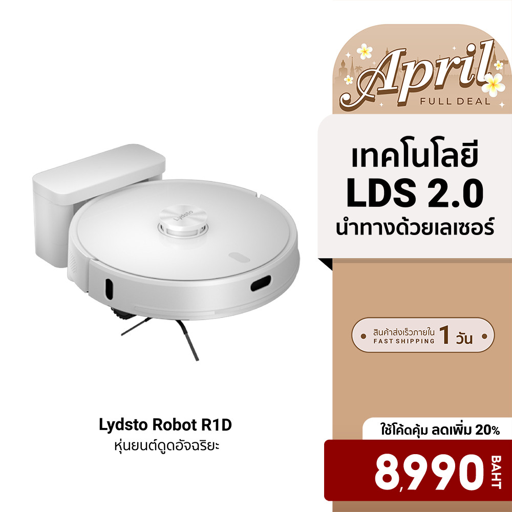 [ลดเหลือ 8990] Lydsto R1D หุ่นยนต์ดูดฝุ่นอัจฉริยะ จดจำแผนที่สูงสุด 3 แผนที่ แรงดูดได้มากถึง 2700Pa -3M |