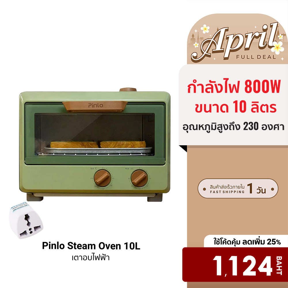 [ลดเหลือ 1124] Pinlo Steam Oven 10L เตาอบไฟฟ้า เตาอบไอน้ำ เตาอบขนม 10 ลิตร กระจายความร้อน 800W -7D |