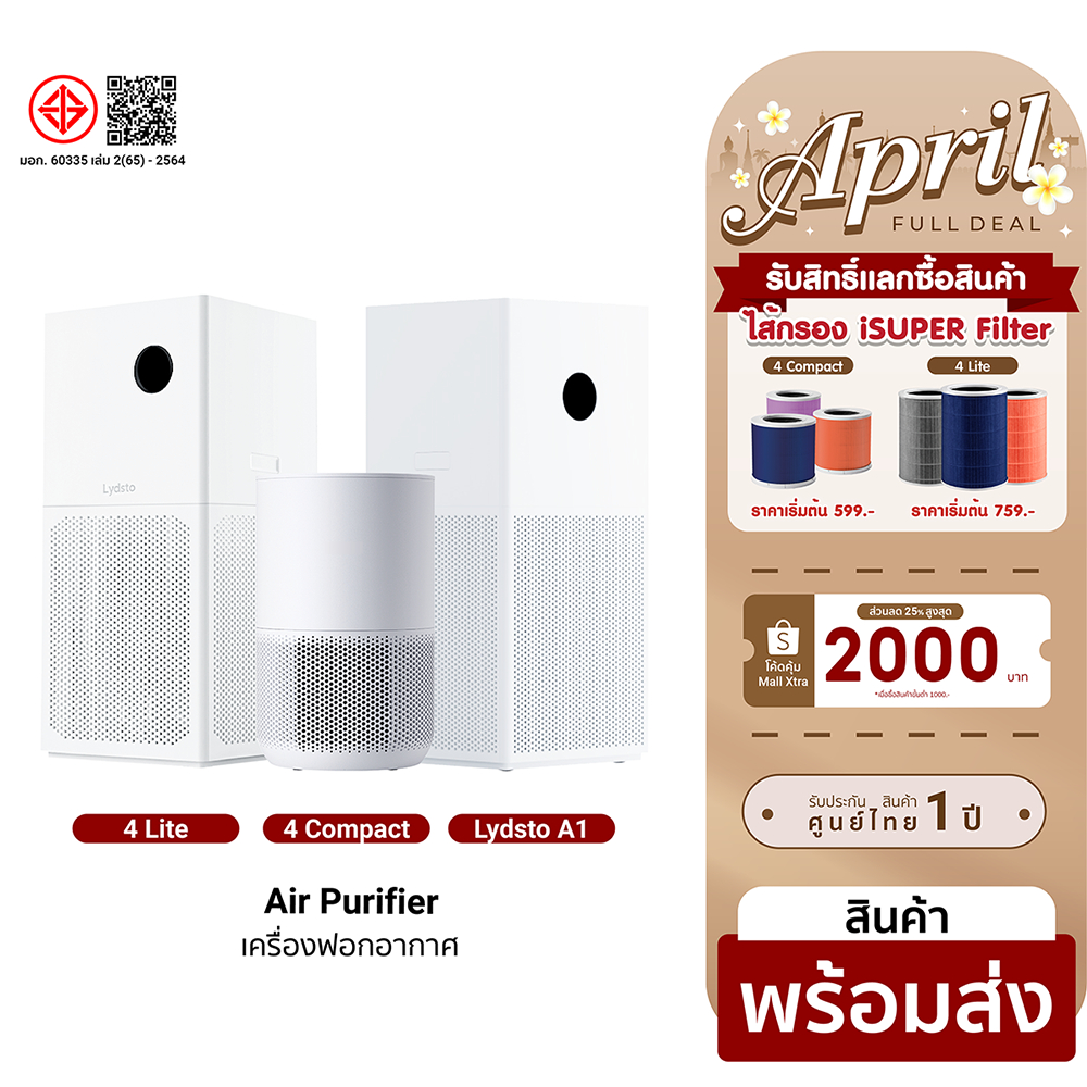 (รับประกันศูนย์ไทย) Xiaomi Mi Smart Air Purifier 6 / 4 Lite / 4 / 4 Pro / 4 Compact / Elite / Lydsto A1 เครื่องฟอกอากาศ |
