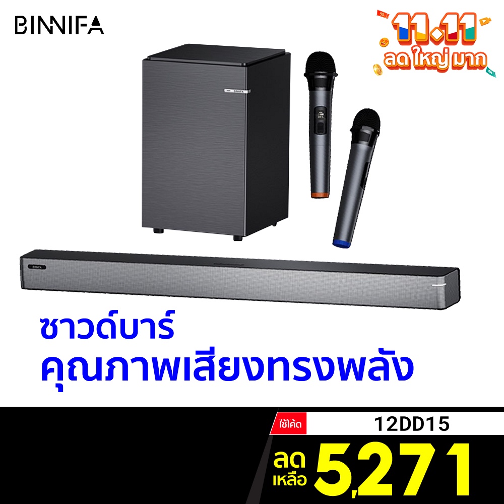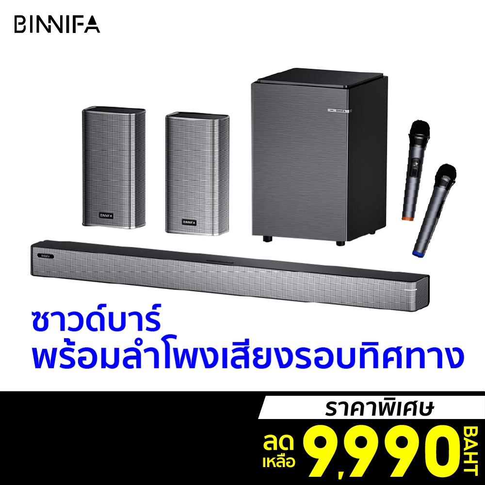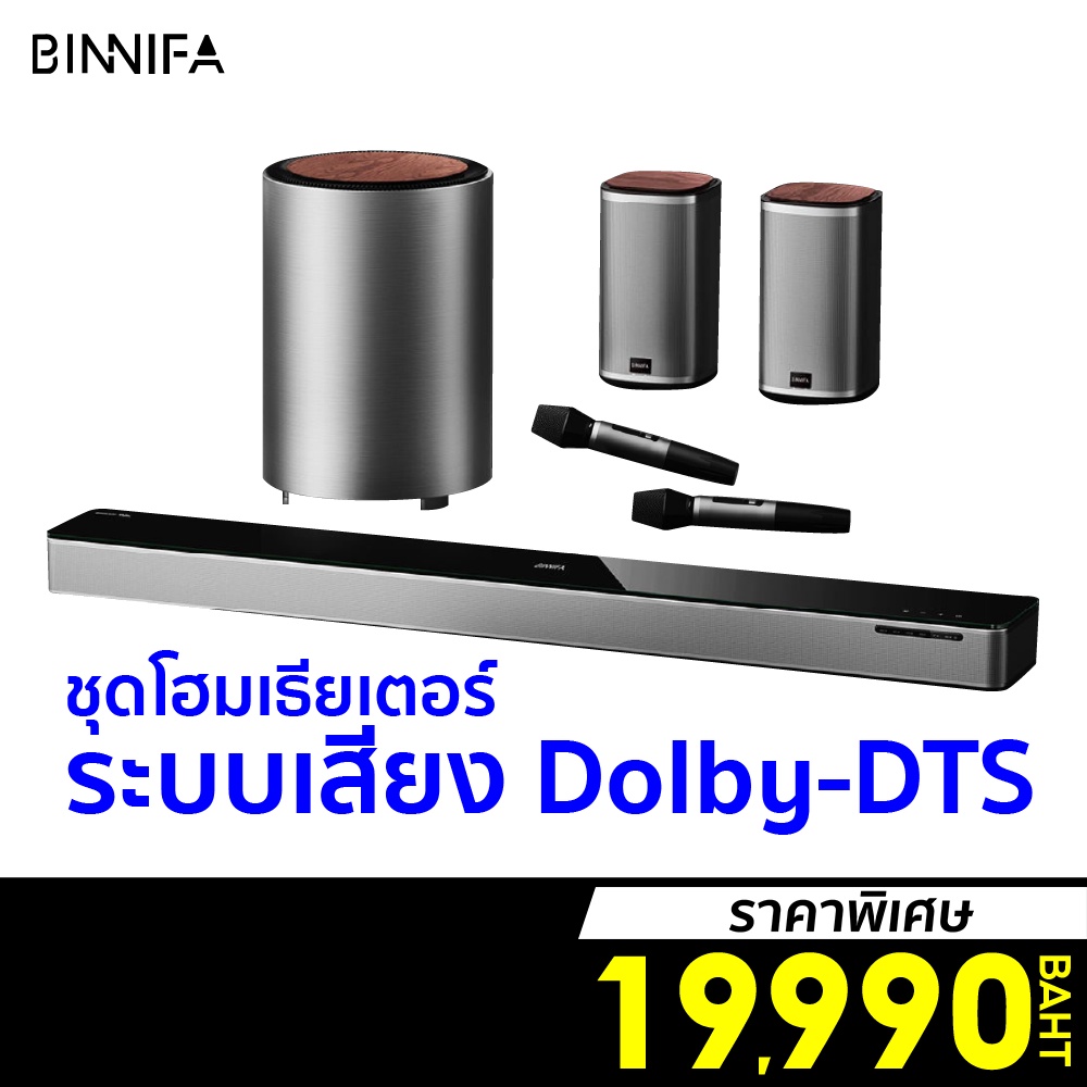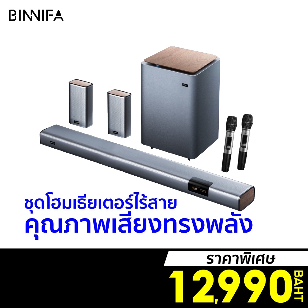 [ราคาพิเศษ 12990บ.] BINNIFA Live 3D ชุดโฮมเธียเตอร์ ระบบ 5.1 คาราโอเกะ ไมโครโฟนคู่ไร้สาย -1Y |