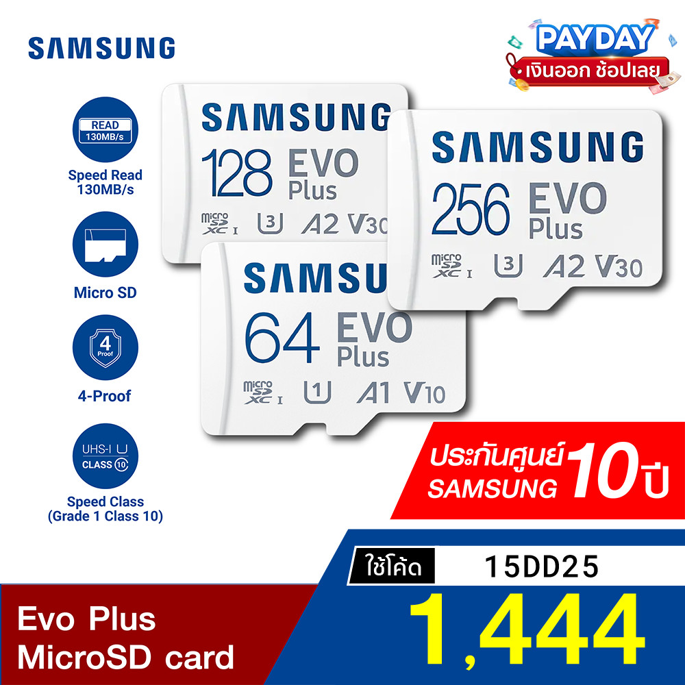 [1444 บ. โค้ด 15DD25] Samsung Evo Plus (2021) เมมโมรี่การ์ด MicroSD card 64/128/256GB (UHS-I U3) -10 Y |