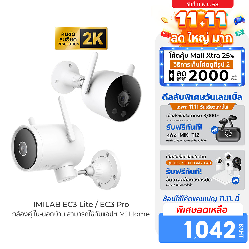 | IMILabThailand | 7359422993 | 31549642350 | [ลดเหลือ 1042] IMILAB EC3 Lite / EC3 Pro กล้องวงจรปิดนอกบ้าน Ai ไล่โจร คมชัด 2K ฉลาดมากขึ้น เชื่อมต่อแอปฯ -24M | [object Object] | 1,890.00 | 1,757.70 | 206 | 21 | 36,911.70 | 1,799.00 | 1,673.07 | 4 | 3 | 50 | 83,653.50 | 227% | 1,799.00 | 8 | 16% | 14,392.00 | |||||||