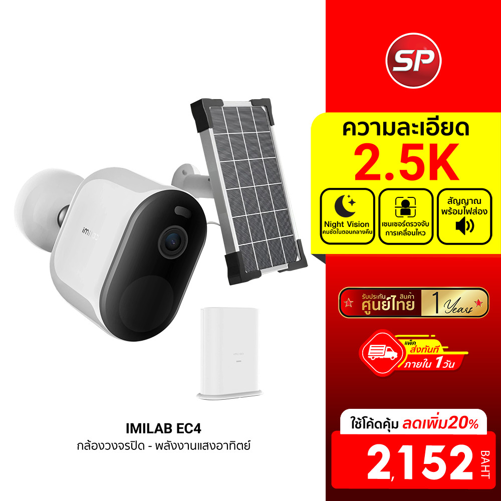[ลดเหลือ 2152] IMILAB EC4 (GB V.) กล้องวงจรปิด ไร้สาย คมชัด 2.5K 4MP เชื่อมต่อแอป IMILAB Home ศูนย์ไทย -1Y |