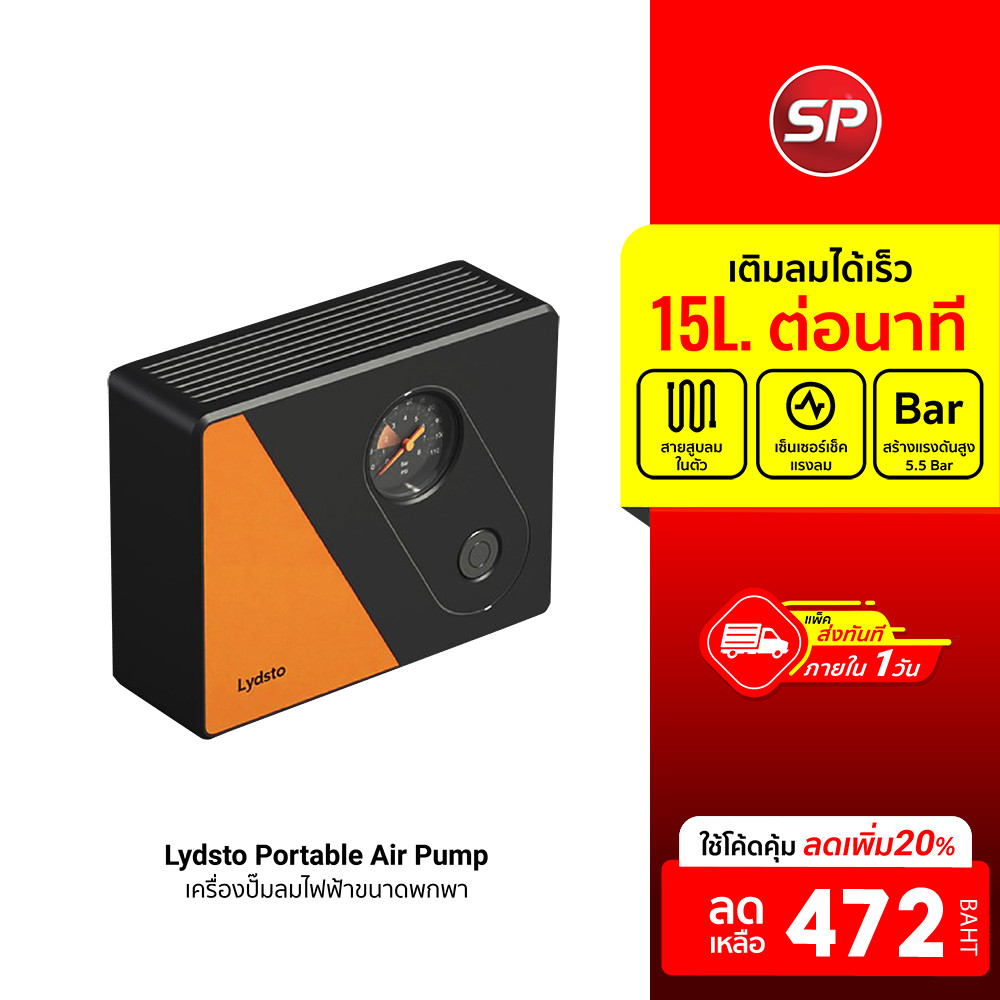 [ลดเหลือ 472] Lydsto Portable Air Pump ปั๊มลมไฟฟ้าขนาดพกพา 12V (Car Charger) เเรงอัด 5.5 Bar -3M |