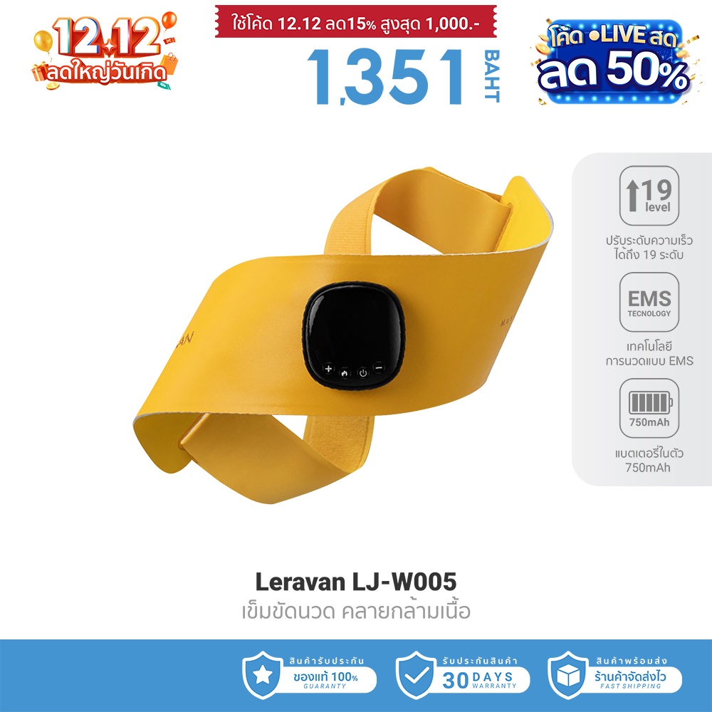 [1351 ดูโค้ดรูป 2] Leravan LJ-W005 เข็มขัดนวด คลายกล้ามเนื้อ EMS ระบบทำความร้อน 45°C -30D