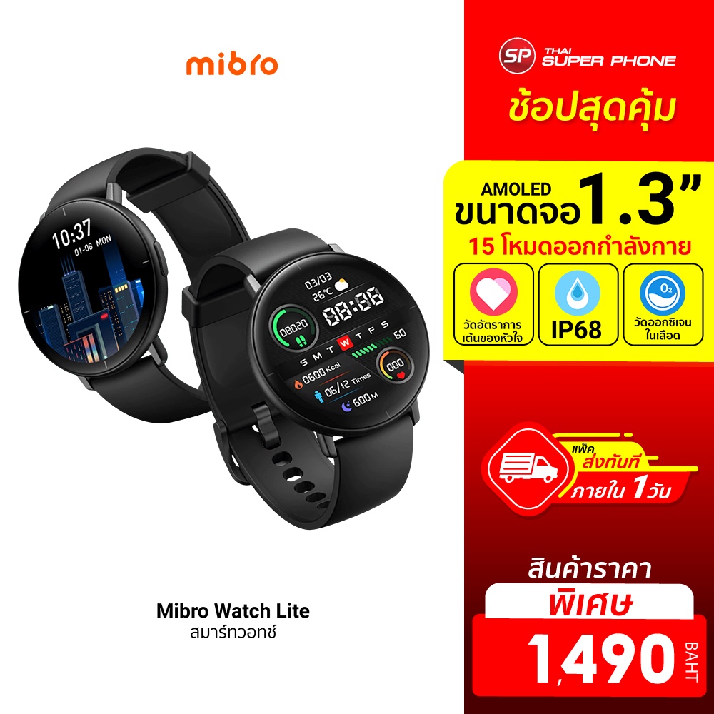 ศูนย์ไทย [ราคาพิเศษ 1490บ.] Mibro Lite Watch สมาร์ทวอทช์ หน้าจอ Amoled HD 1.3 นิ้ว ใช้งานยาวนาน -1Y |