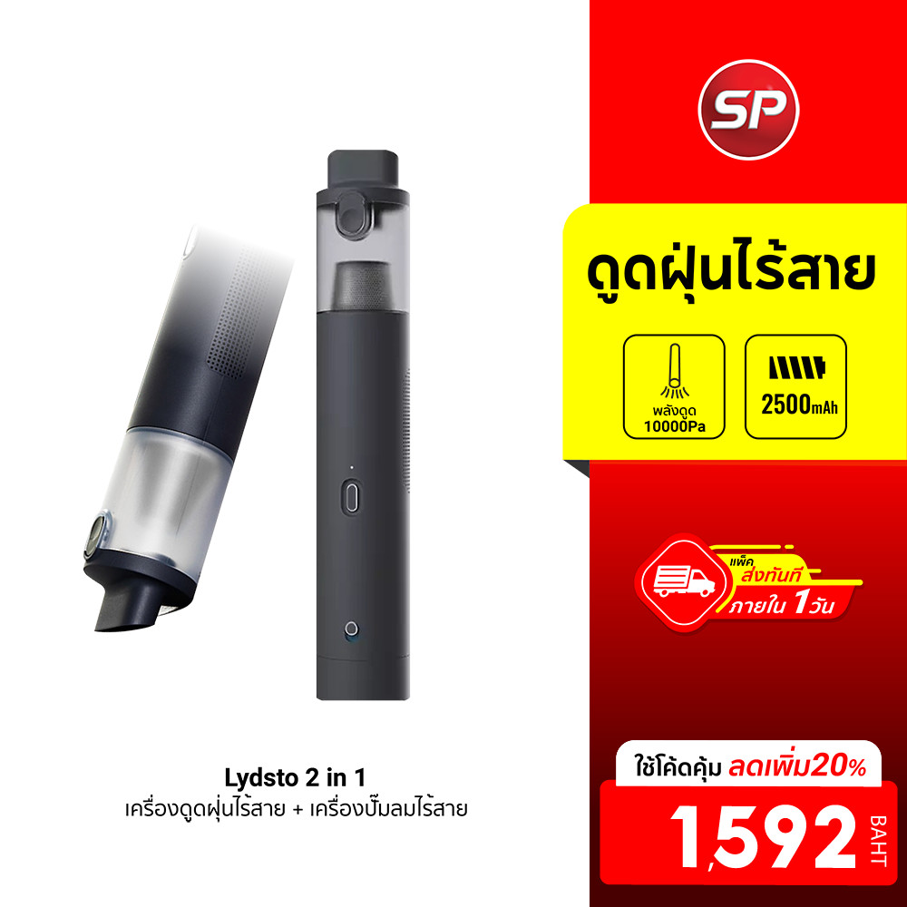 [ลดเหลือ 1592] Lydsto 2 in 1 เครื่องดูดฝุ่นไร้สาย + เครื่องปั๊มลมไร้สาย แบตเตอรี่อึด น้ำหนักเบา -3M |