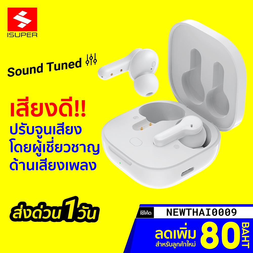 [ราคาพิเศษ 659บ.] iSUPER Evo Buds เบสดี คุยชัด Bluetooth 5.1 แบตอึด 40 ชม. หูฟังไร้สาย หูฟังบลูทูธ -1Y |