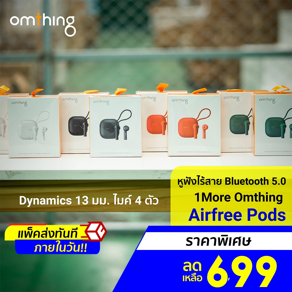 [ราคาพิเศษ 699บ.] 1More Omthing Airfree Pods หูฟังไร้สาย aptX ชาร์จไร้สาย ไมค์ตัดเสียง 4 ตัว - 7D |