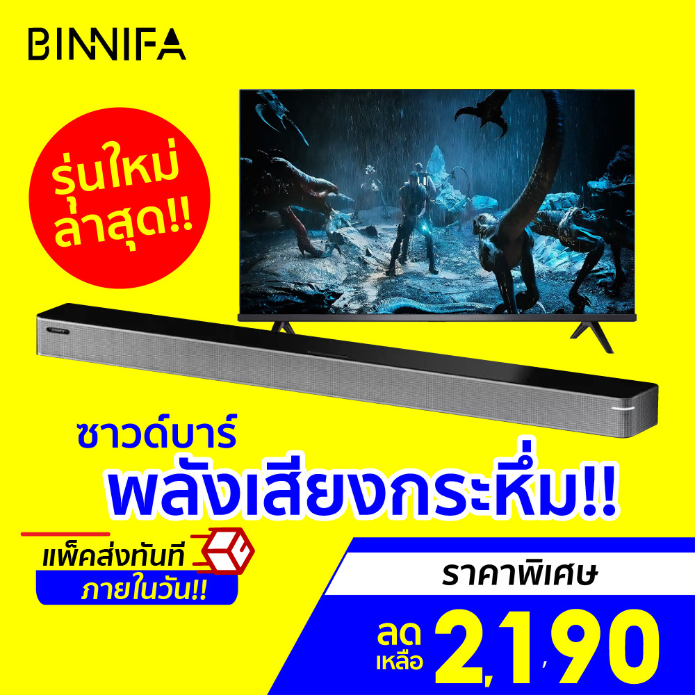 [ราคาพิเศษ 2190บ.] BINNIFA Play 6D ซาวด์บาร์ บลูทูธ5.0 ลำโพง 4ตัว คุณภาพเสียงระดับสูง ดีไซน์สวย -30D |