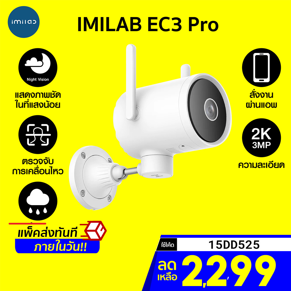 [2299 โค้ด 15DD525] IMILAB EC3 Pro กล้องวงจรปิดนอกบ้าน Ai ไล่โจร คมชัด 2K ฉลาดมากขึ้น โหมดกลางคืนคมชัด -2Y |