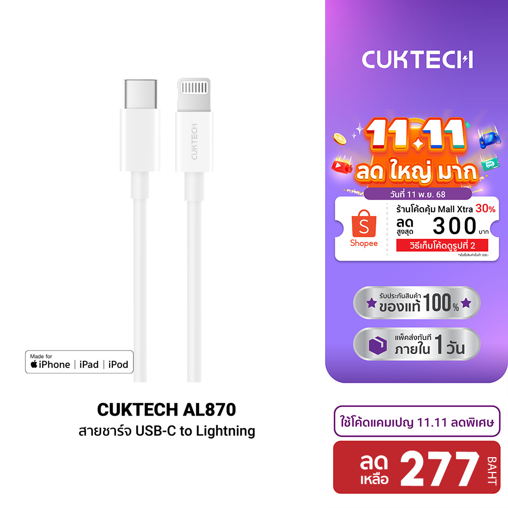 [ลดเหลือ 321] CUKTECH AL870 / ZMI AL856 / CL315P สายชาร์จ Type-C to Lightning รองรับชาร์จไวสำหรับ iPhone มาตรฐาน MFI -2Y |