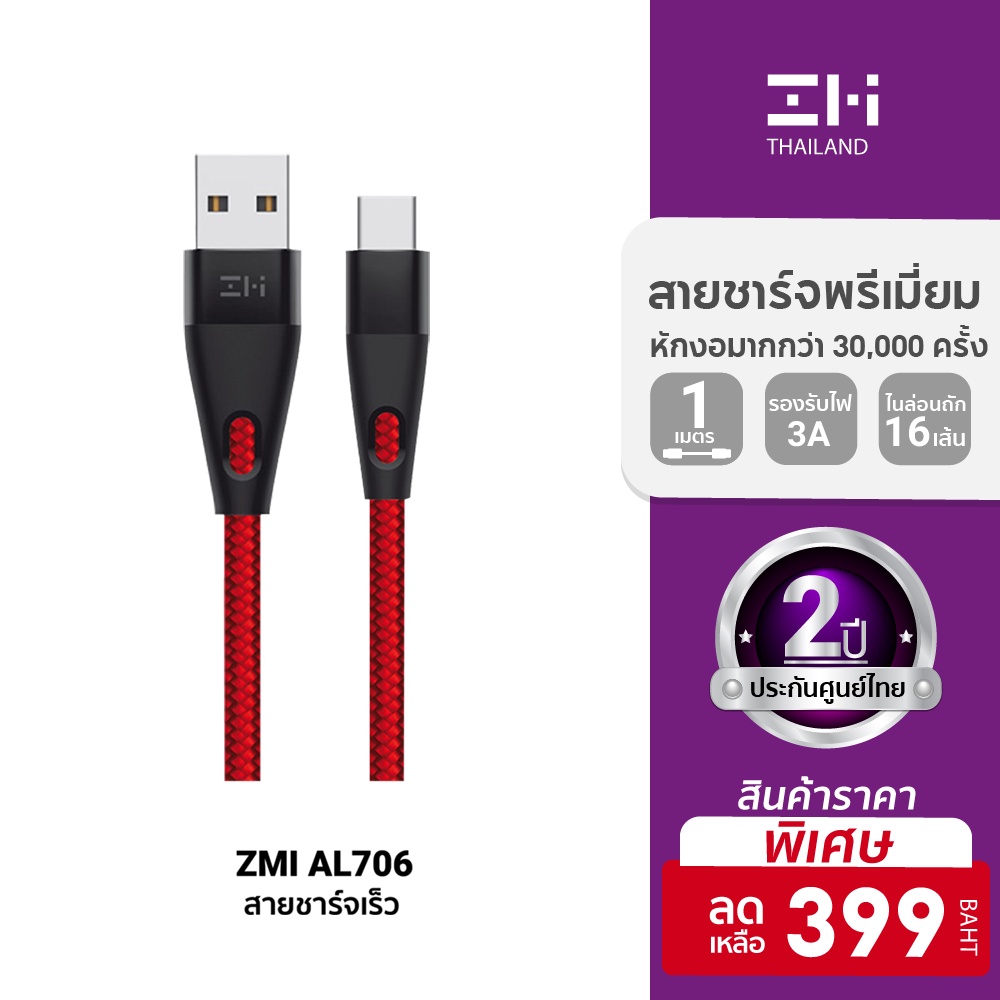 [ราคาพิเศษ 399บ.] ZMI AL706/786 สายชาร์จ Premium USB Type-C ถัก 16 ชั้น ทนการหักงอ รองรับชาร์จเร็ว -2Y |
