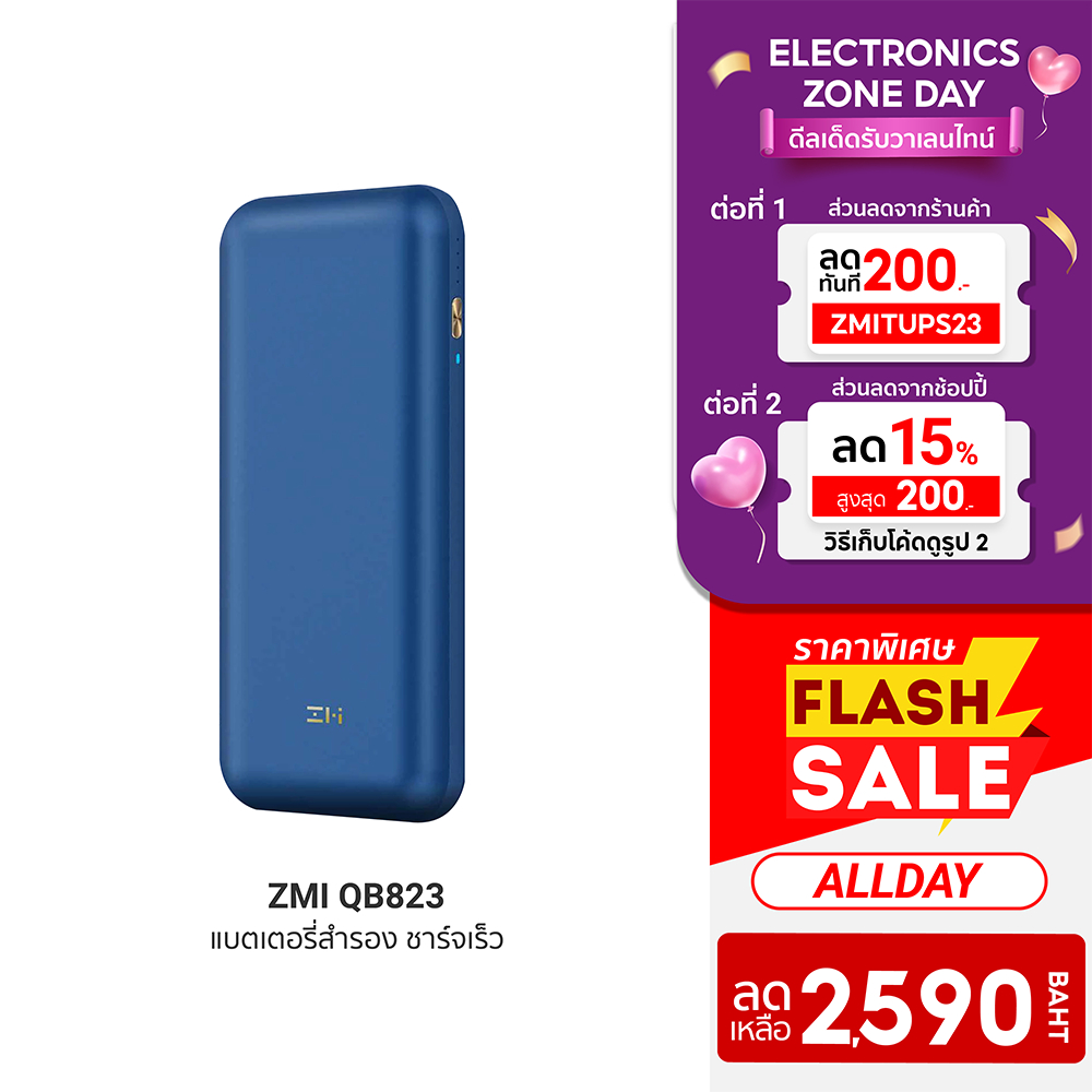 [2590บ.โค้ด3NZTLVLZ] ZMI QB823 แบตสำรองความจุ 20000mAh กำลังไฟจ่ายสูงสุดถึง 65W รองรับ PD 3.0 / QC 3.0