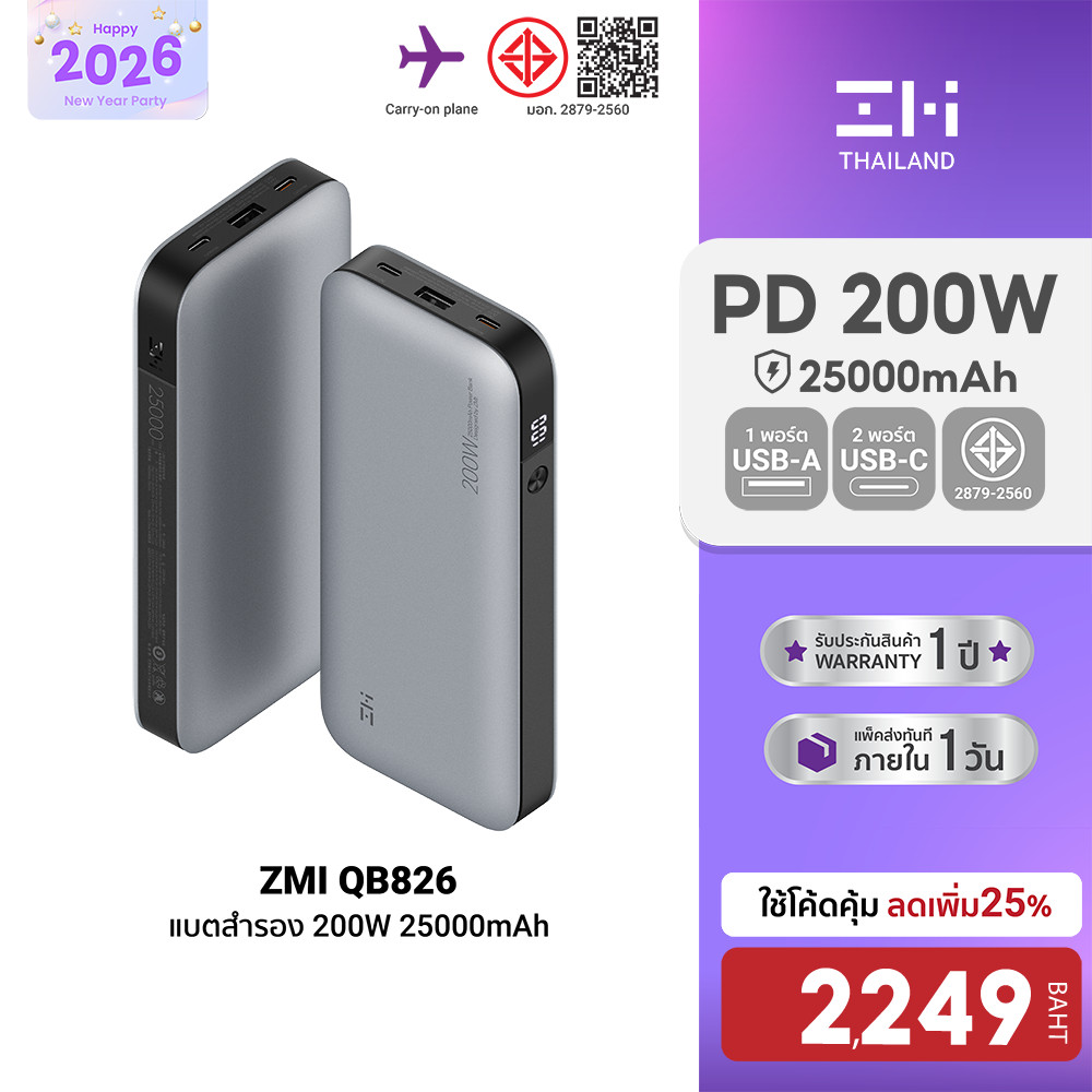 | ZMIThailand | 13370835192 | 87902119215 | [ลดเหลือ 2249] ZMI QB826 Powerbank แบตสำรอง 200W ความจุ 25000mAh USB-A 100W,USB-C 100W -1Y | [object Object] | 3,059.70 | 181 | 6 | 18,358.20 | 2,955.54 | 88,666.20 | 383% | 3,178.00 | |||||||||||||||