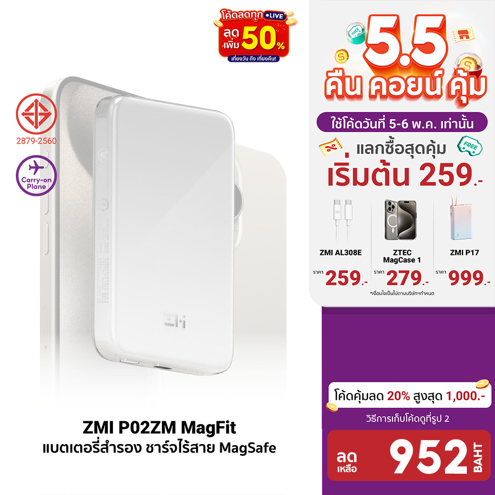 | ZMIThailand | 18941287646 | 164304000145 | [952 ดูโค้ดรูป 2] ZMI P02ZM MagFit Powerbank แบตสำรอง 5000mAh USB-C น้ำหนักเบา ระบบป้องกัน 9 ชั้น -12M | [object Object] | 1,590.00 | 1,462.80 | 1 | 0 | 0.00 | 1,499.00 | 1,379.08 | 4 | 4 | 70 | 96,535.60 | 0% | 1,499.00 | 123 | 176% | 184,377.00 | |||||||