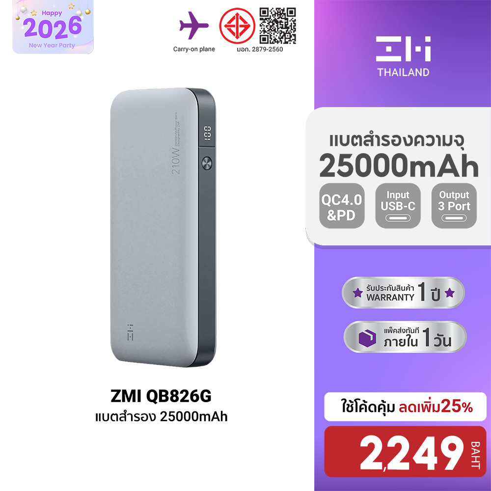 | ZMIThailand | 8222405059 | 211030232933 | [ลดเหลือ 2249] ZMI QB826G Powerbank แบตสำรอง 210W ความจุ 25000mAh USB-A 100W,USB-C 100W ชาร์จไว -1Y | [object Object] | 3,026.80 | 87 | 3 | 9,080.40 | 2,851.08 | 142,554.00 | 1470% | 3,099.00 | |||||||||||||||